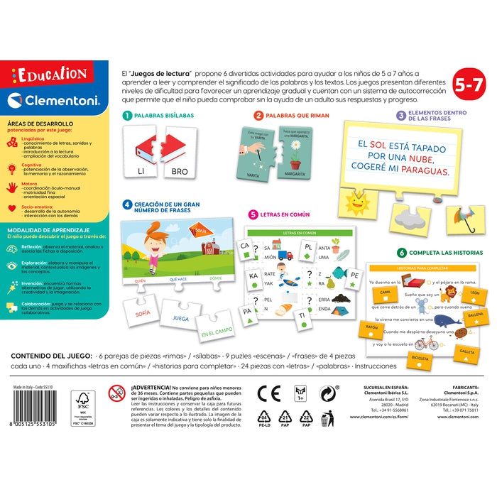 Un divertido juego con fichas, pizarras y tarjetas para guiar al niño en el descubrimiento de las letras, las sílabas y las palabras.