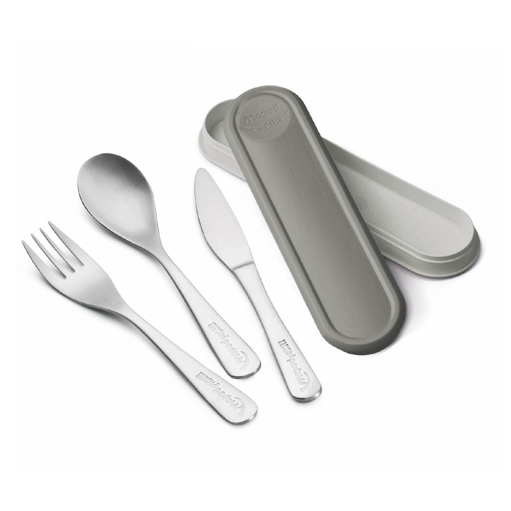 El juego de cubiertos de viaje de 3 piezas (cuchara, tenedor, cuchillo) de Maped Picnik es una solución perfecta para cualquiera que lleve una comida al trabajo, a la escuela, de excursión o de picnic.