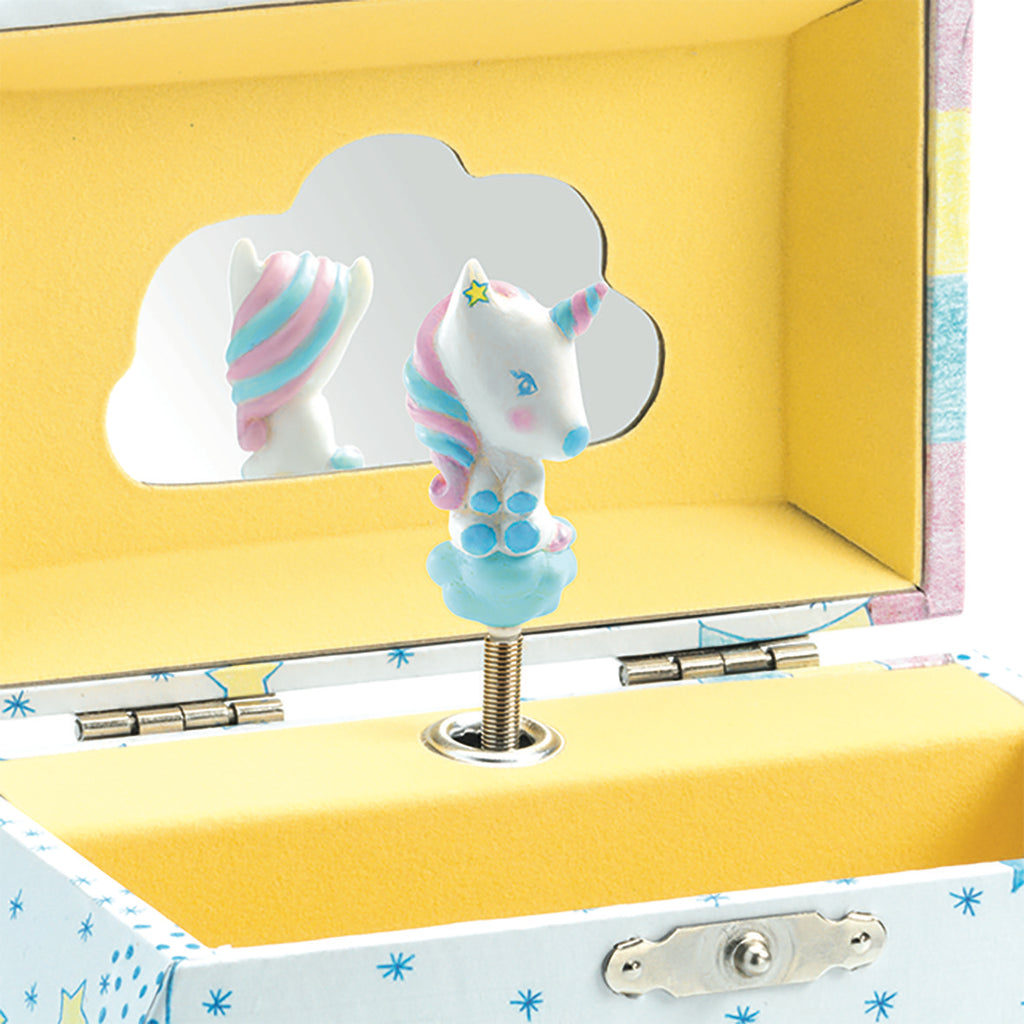 Caja musical perfecta cómo joyero gracias a su espacio y varios compartimientos, este lindo unicornio baila al compas con el "Danubio Azul". Un regalo perfecto.
