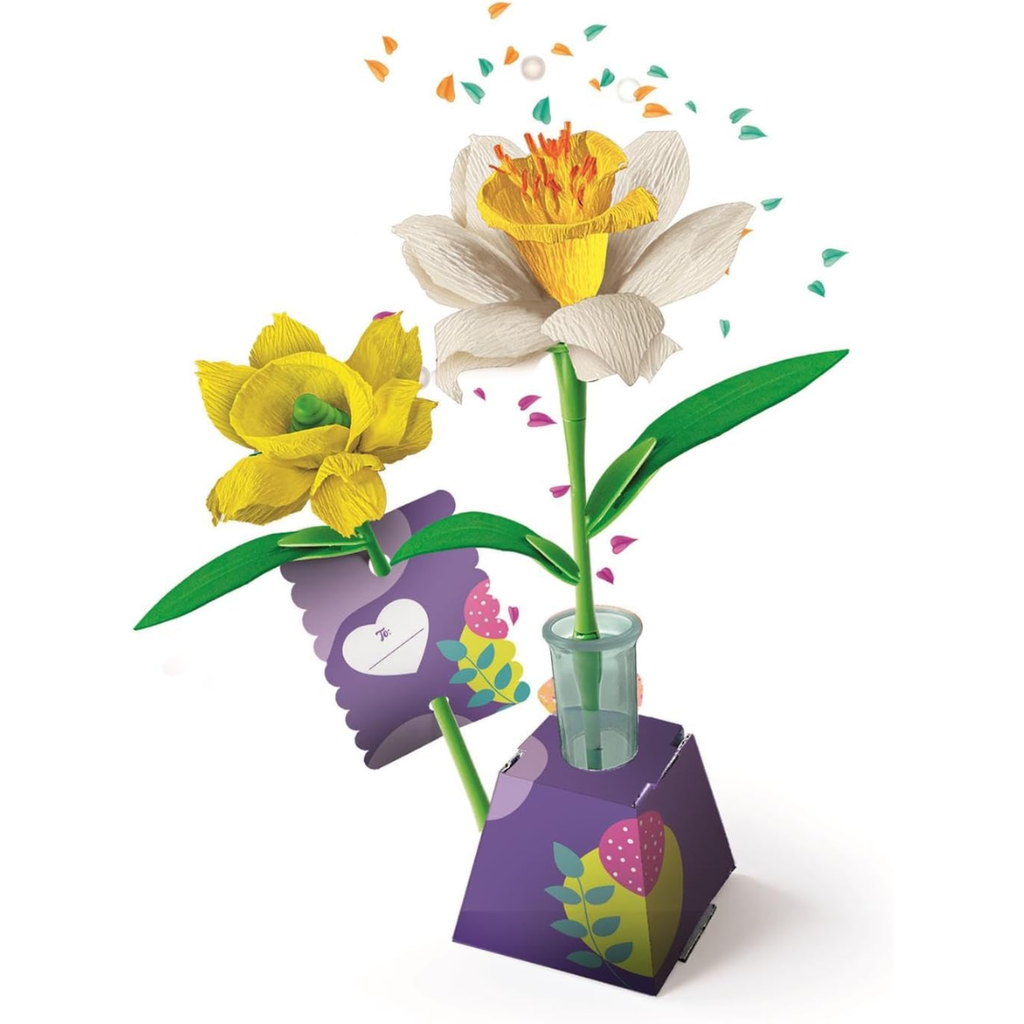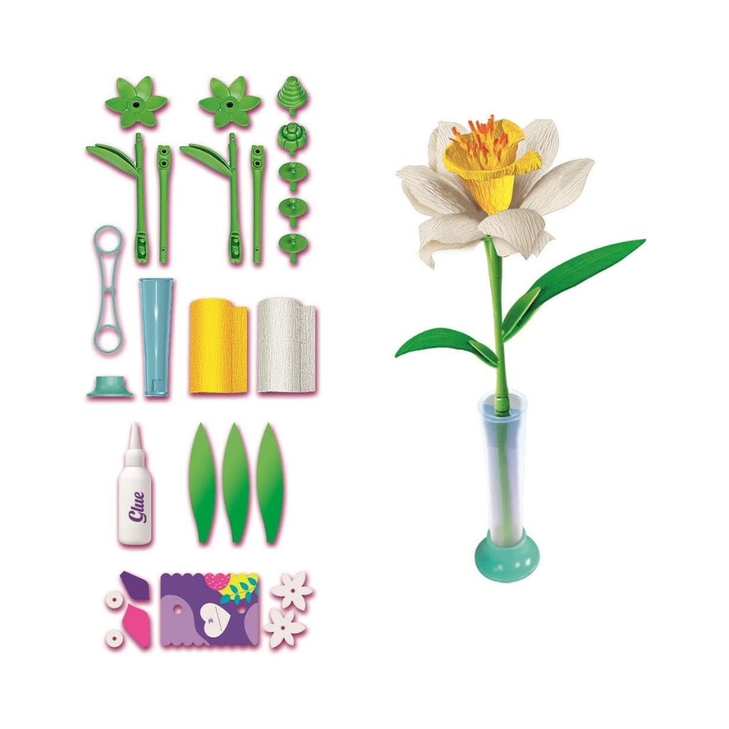 Un original kit creativo que permite montar 2 flores y personalizarlas con diferentes colores, eligiendo entre 3 tipos de flores: rosa, tulipán y narciso.