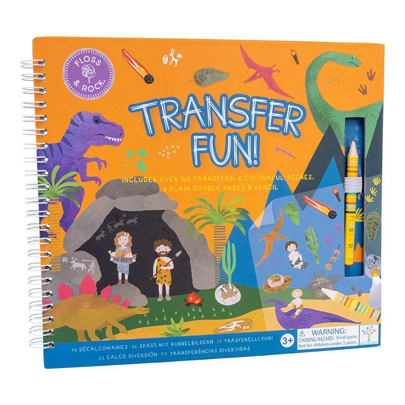 ¡Diviértete a lo grande con las calcomanías! Este set de calcomanías de dinosaurios incluye más de 150 calcomanías geniales con temática de dinosaurios, 6 coloridas escenas para colocarlas, 6 páginas en blanco para dibujar libremente y un lápiz. Abre el libro de espiral para encontrar todas tus calcomanías ordenadas en el bolsillo "Mis Calcomanías", busca la ilustración que prefieras y hojea las páginas hasta encontrar la escena perfecta. Rasca el dibujo con el lápiz Floss & Rock incluido y levanta la hoja: ¡como por arte de magia, las calcomanías aparecerán transferidas a la página! Pasa horas dando rienda suelta a tu creatividad y creando hermosos dibujos con dinosaurios, cavernícolas, volcanes, fósiles y mucho más.