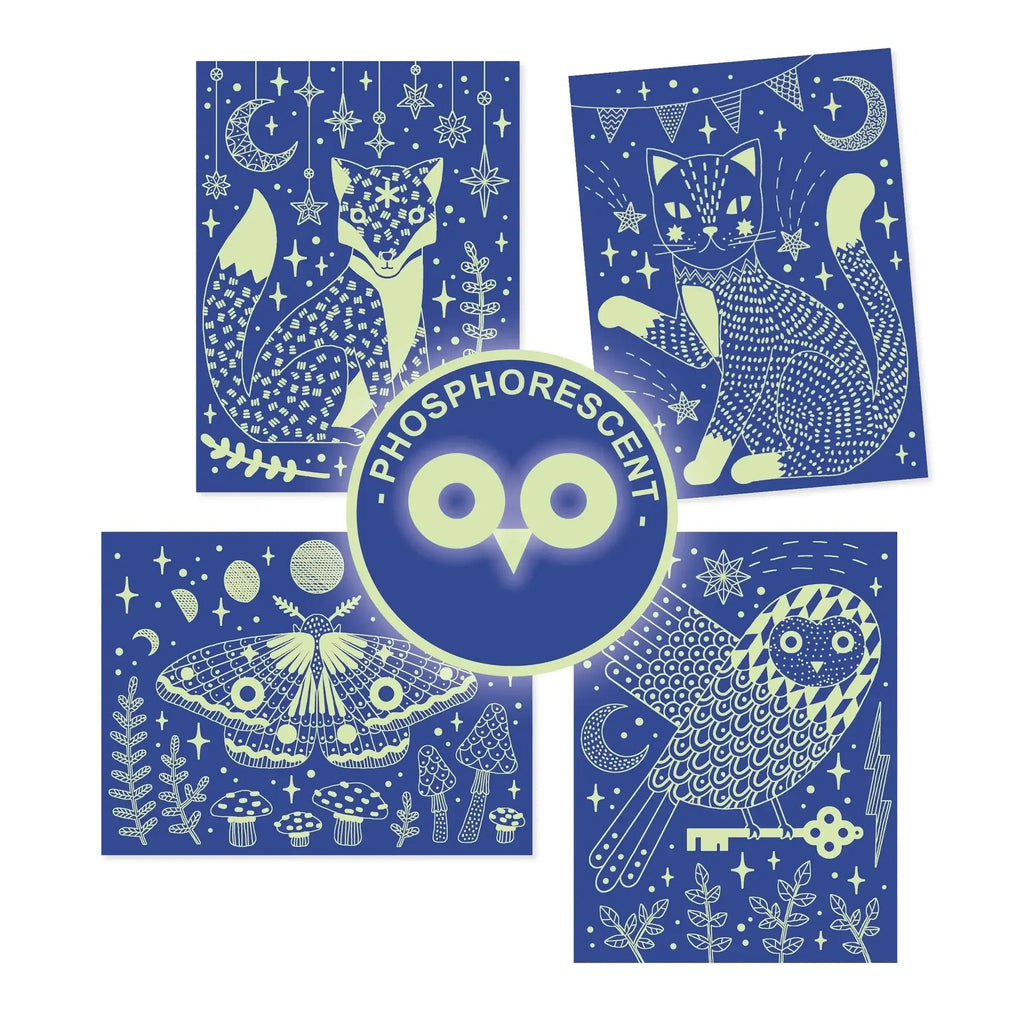 Con las tarjetas rasca y gana infantiles "De noche" de Djeco, tu hijo realizará cuadros con una técnica especial.