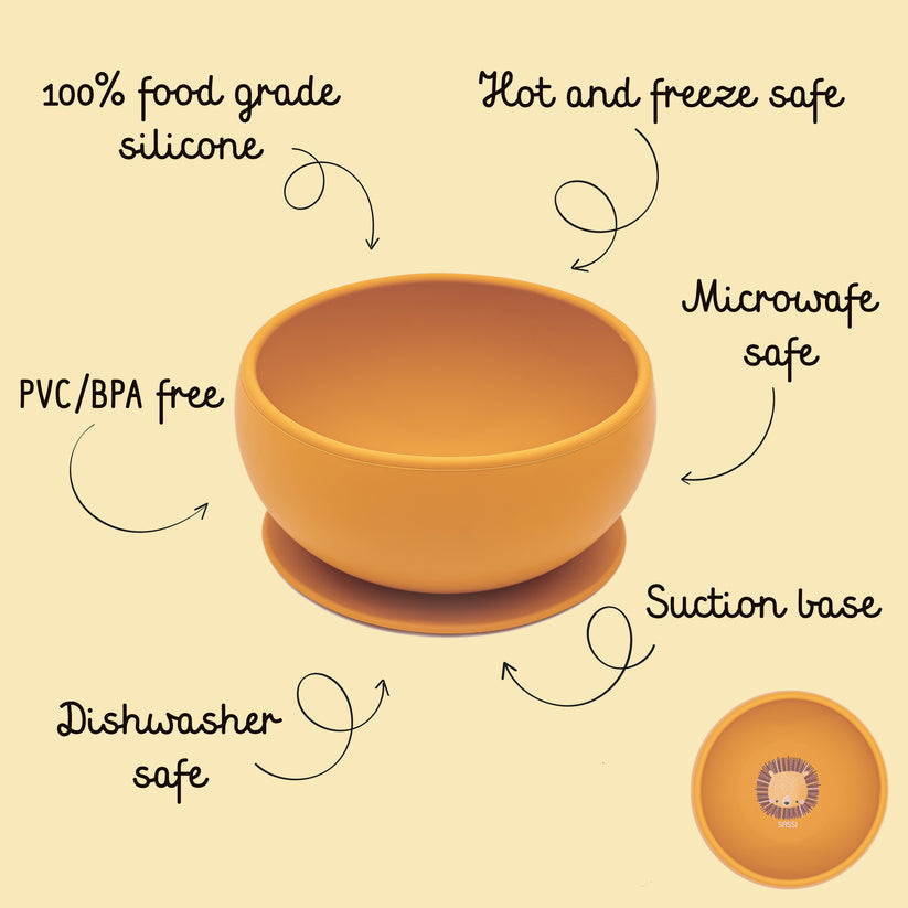 El tazón de silicona para bebés de Chompy, el león, es perfecto para sus primeras comidas de adultos. Sus paredes altas facilitan que el bebé coma solo, mientras que su base con ventosa garantiza su seguridad. El tazón está hecho de silicona de grado alimenticio y es apto para lavavajillas y microondas.